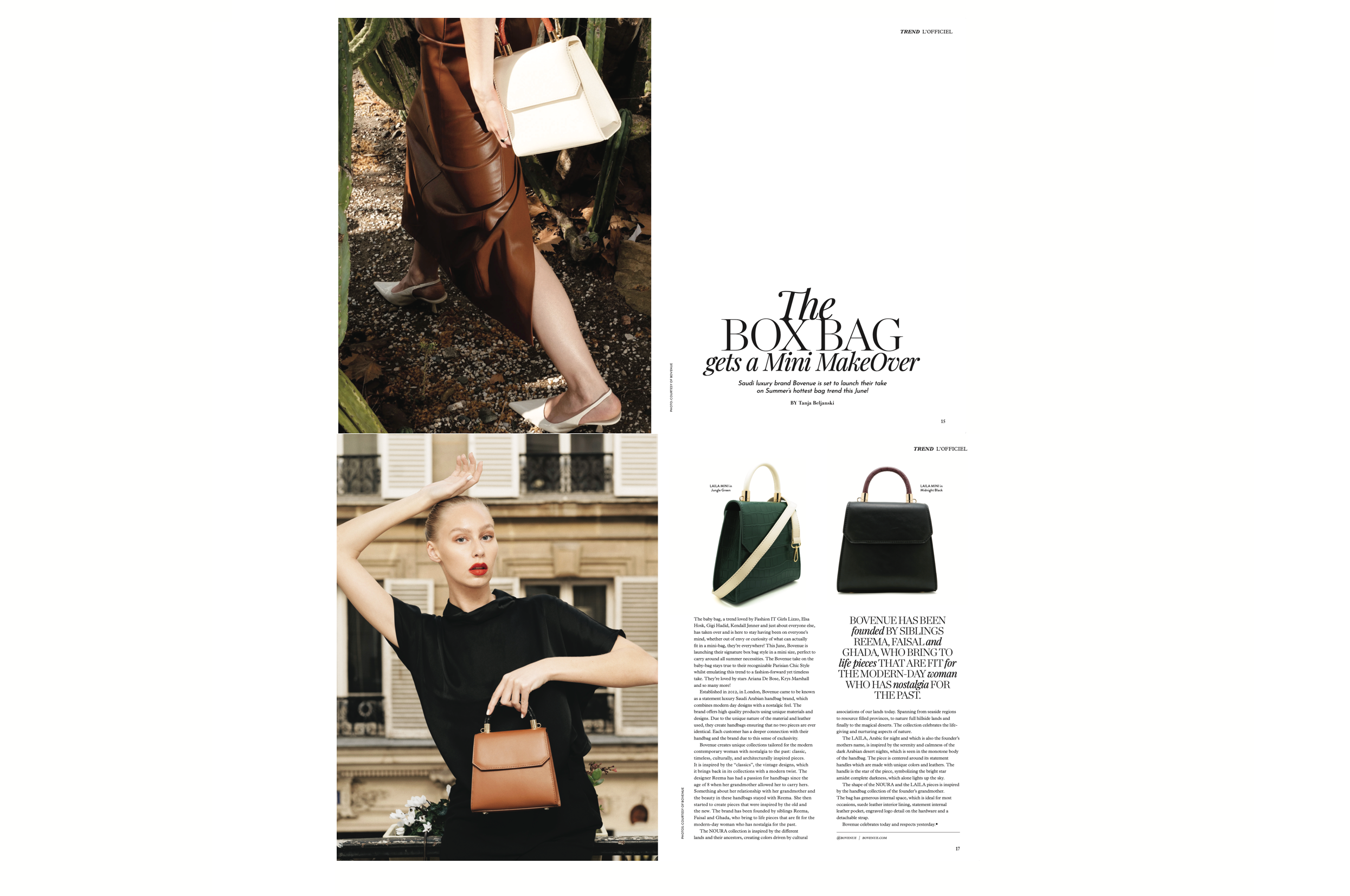 Bovenue gets a 3 page feature on L'Officiel for its Mini bags